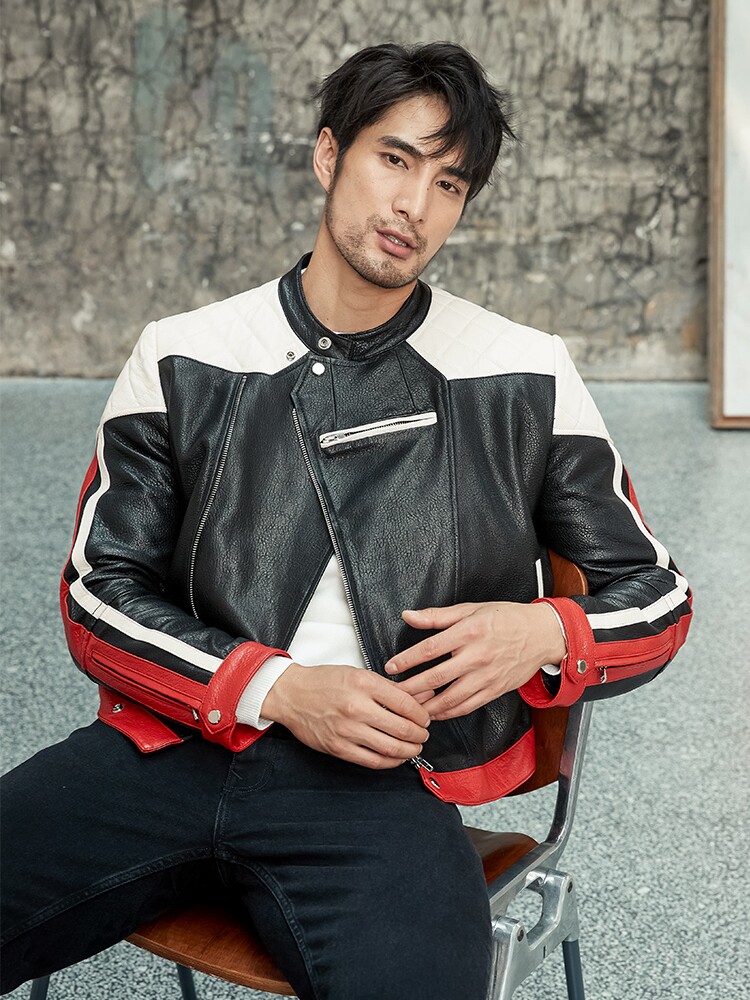 Noid Is so Handsome. New Zealand Imported Sheepskin Patchwork Motorcycle Genuine Leather Jacket for Men, Autumn 21