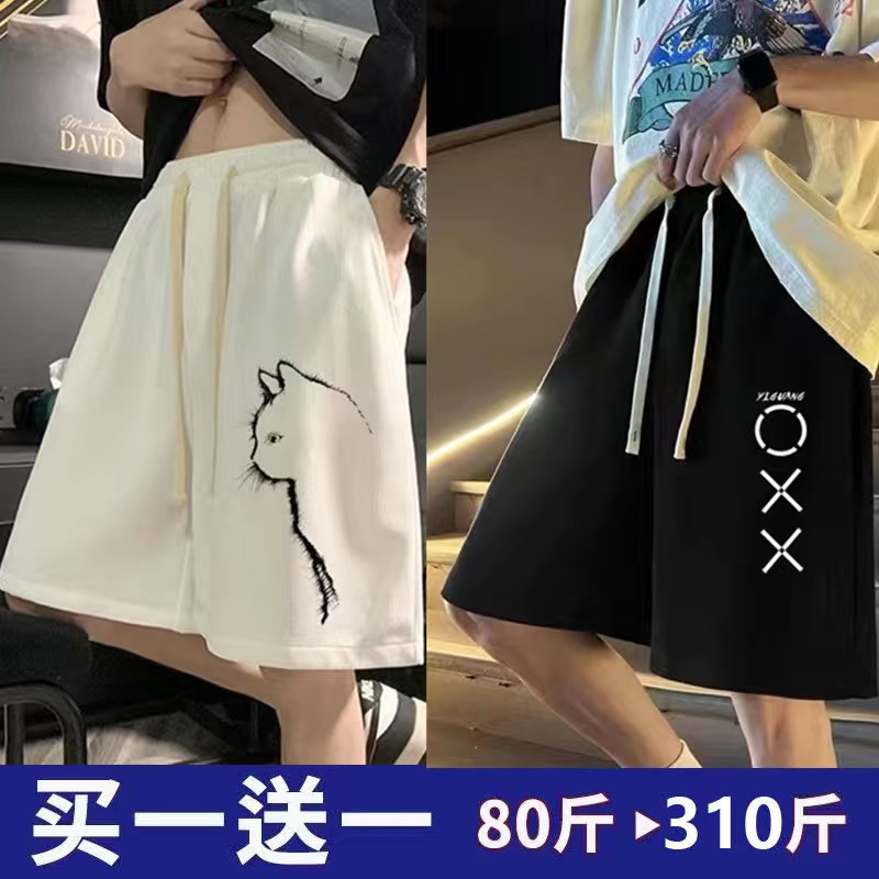 Men's Waffle Casual Shorts, Summer Trendy Brand, Loose Fit, Plus Size, Mid-Length Pants, Thin Sports Shorts, Large Shorts