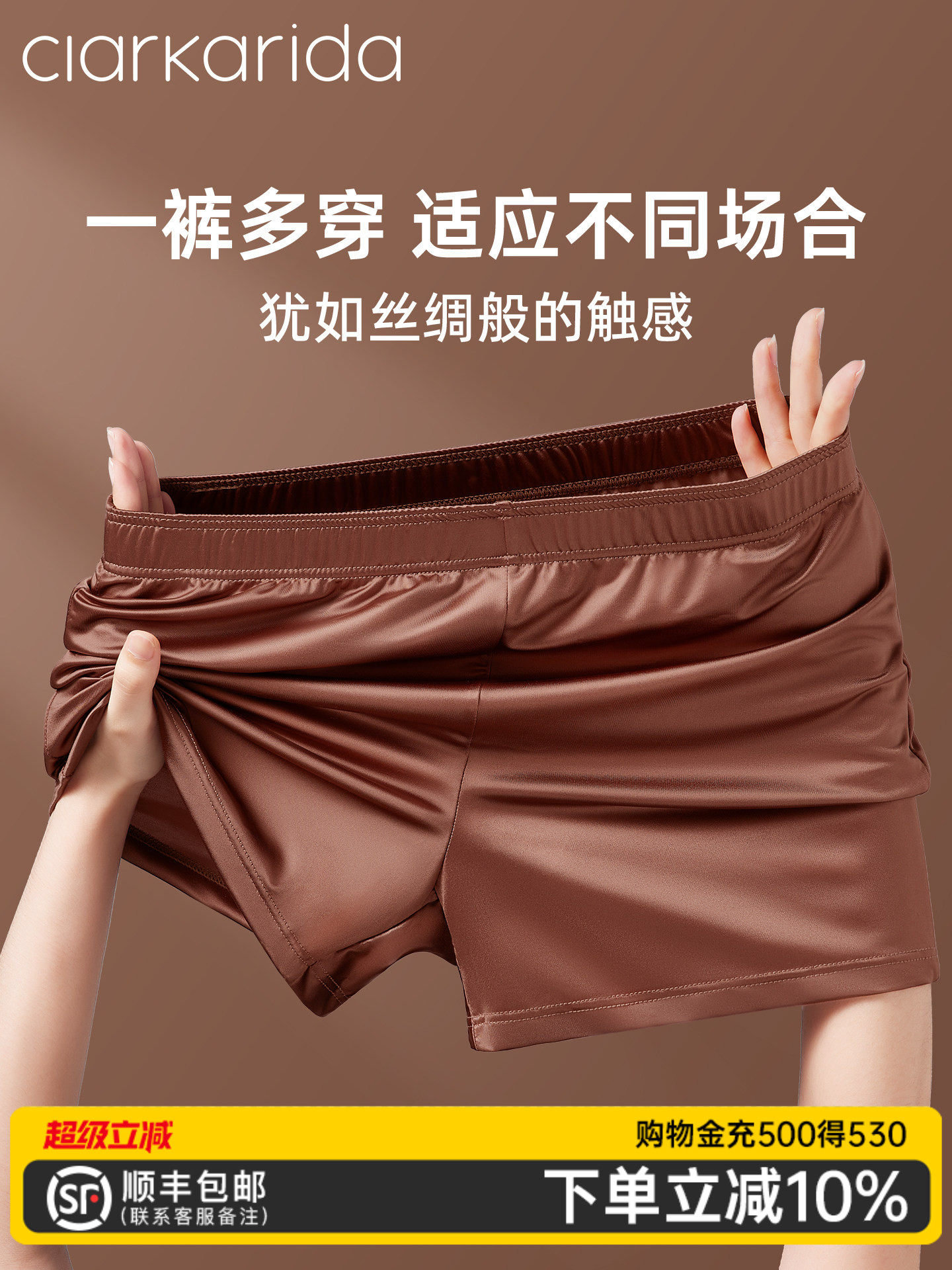 Clarkarida Men's Boxer Briefs Ice Silk Satin High-End Loose-Fitting Two-Point Home Sleep Pants
