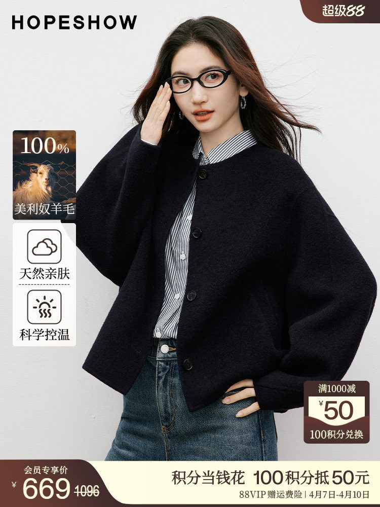 Red Sleeve 100% Merino Wool Coat 2025 Winter New Women's Off-Shoulder Elegant Double-Sided Wool Short Jacket