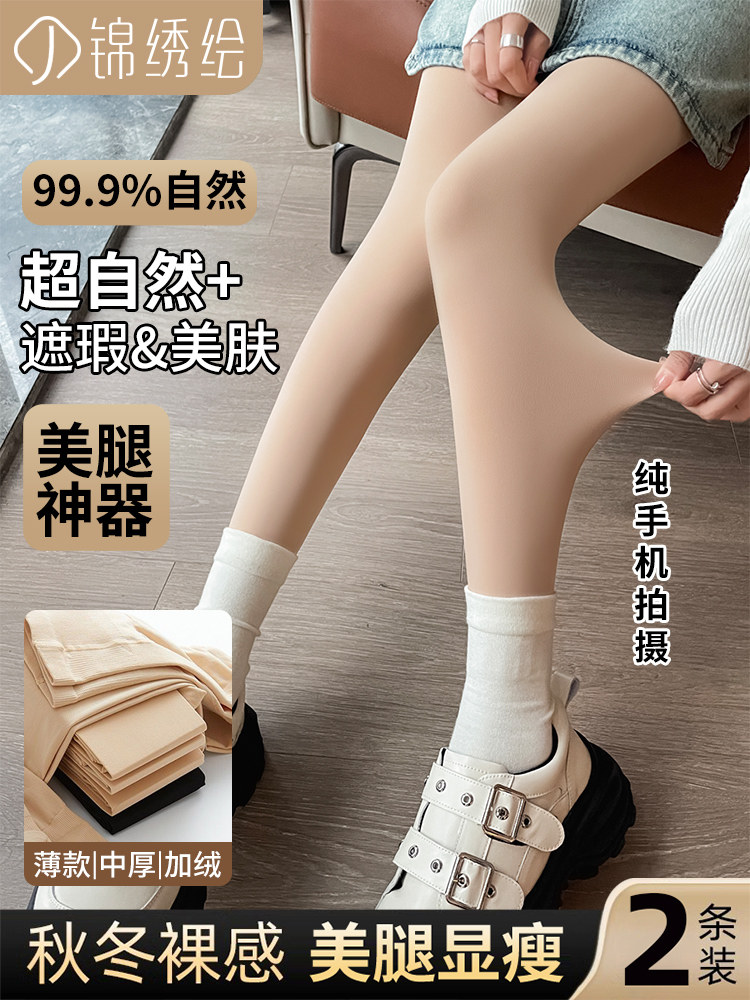 Flesh-Colored Bare-Leg Effect Pantyhose for Women, Autumn and Winter, Ultra-Natural Stockings, Thin Spring and Autumn Style, Outerwear, Fleece-Lined, Thickened Leggings