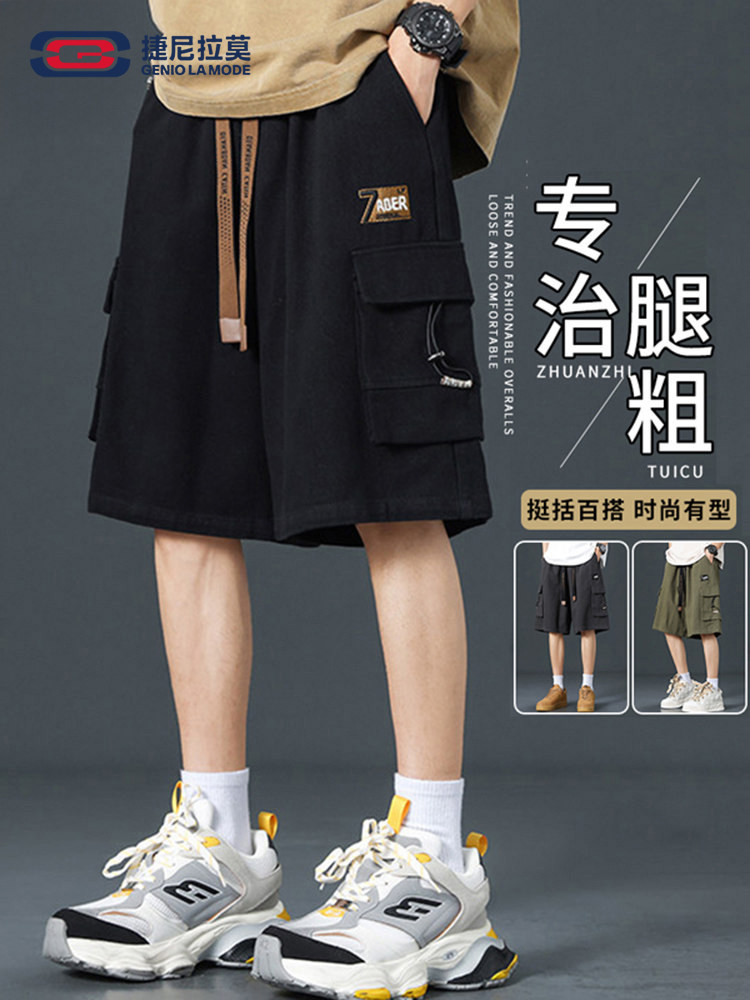 Men's Three-Quarter Shorts, Summer Thin Style, Extra Large, Loose Straight-Leg Mid-Length Pants, Plus-Size Pure Cotton Cargo Pants for Men