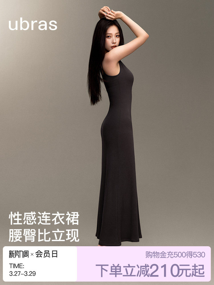 Yu Shuxin Style Ubras Body-Shaping Camisole Sexy Slimming Hot Girl Spaghetti Strap Long Dress Sleeveless Dress Bodycon Dress
