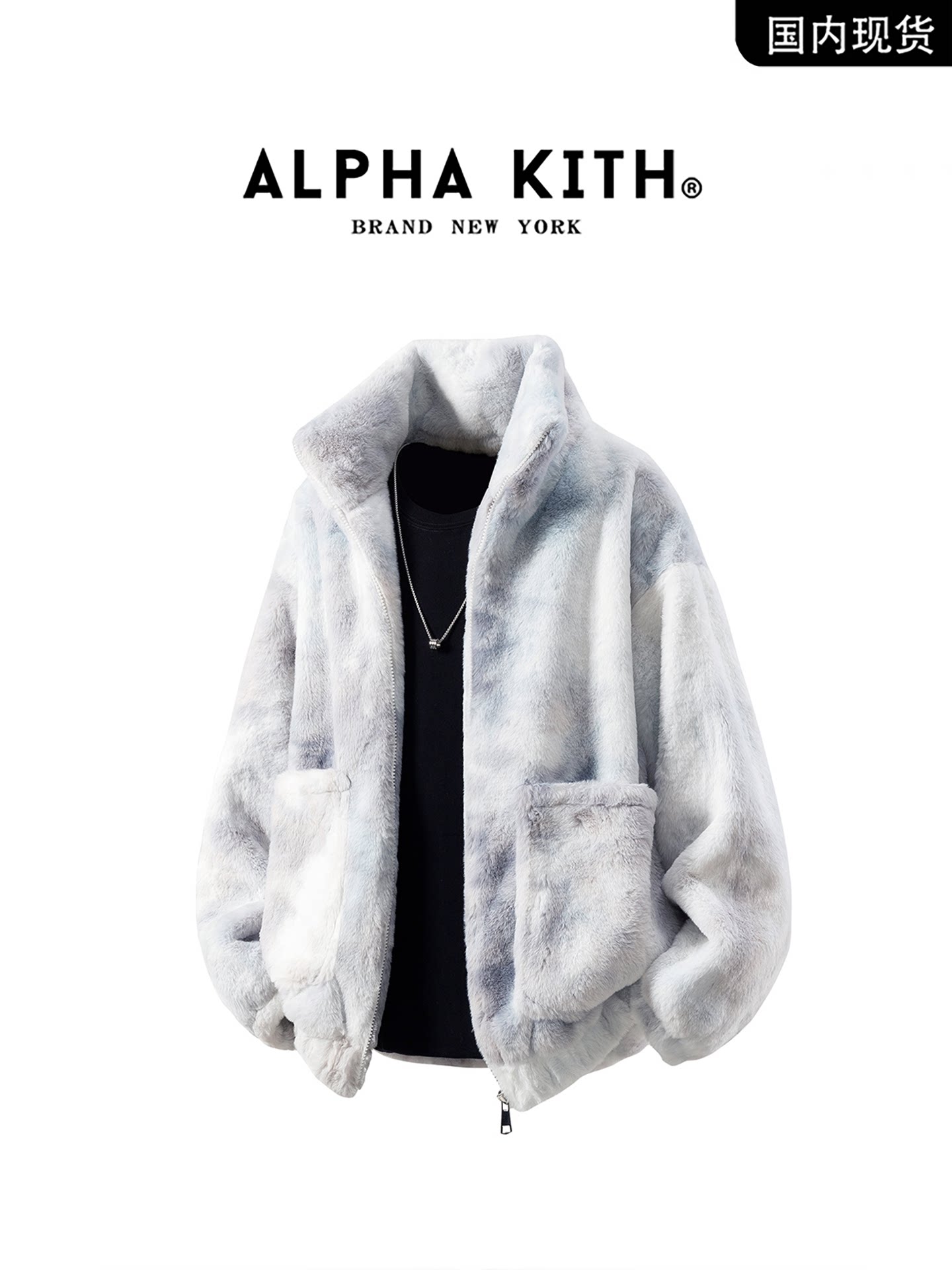 Alpha Kith Official Genuine Lamb Wool Tie-Dye Couple's Oversized Sweatshirt with Fleece Lining, Thickened Loose Cotton Coat for Men