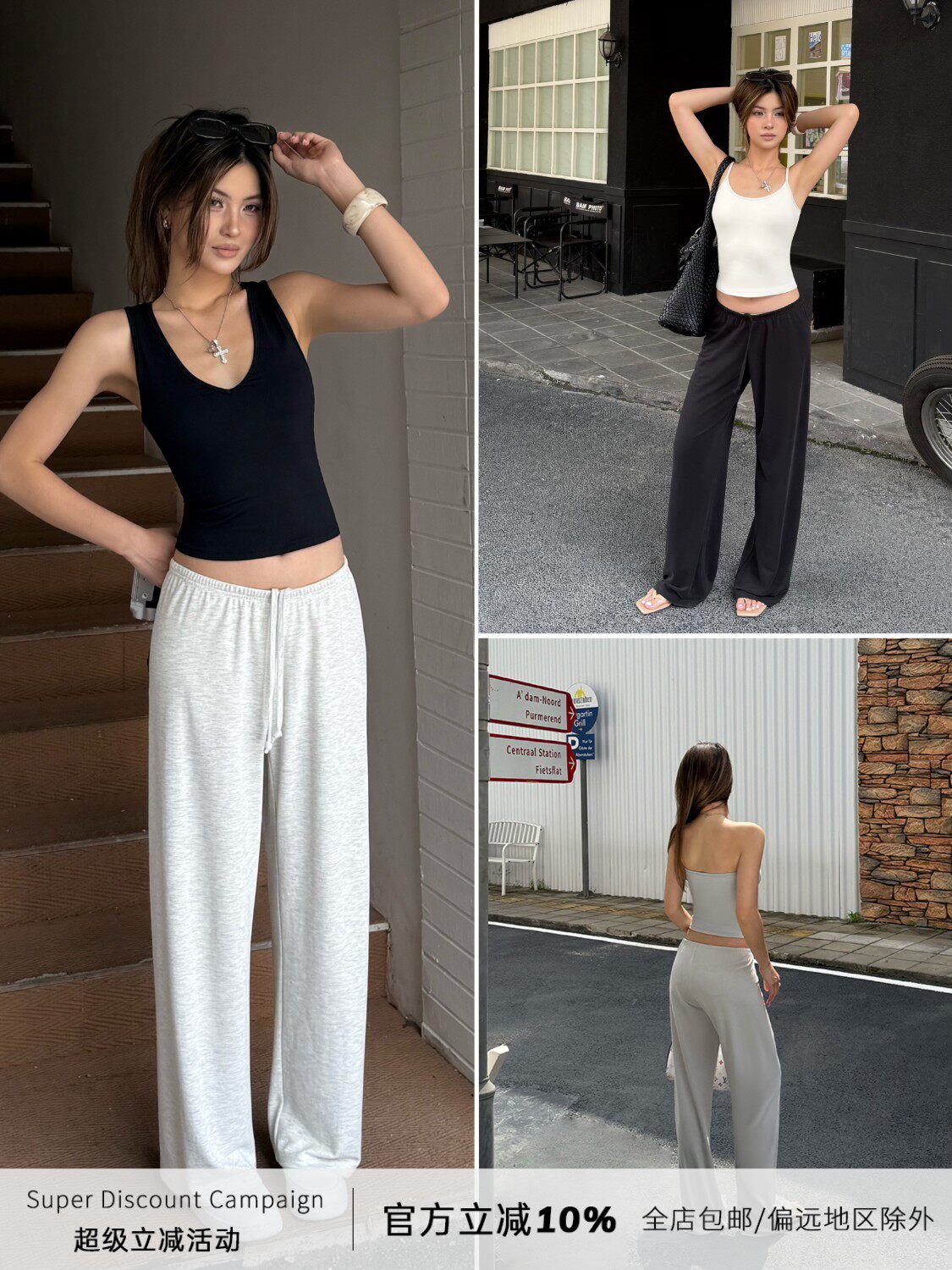 Audwyn Cool Copper Ammonia Silk Low-Waist Long Pants for Women 2026 Summer Loose Slimming Drawstring Drape Casual Wide-Leg Pants