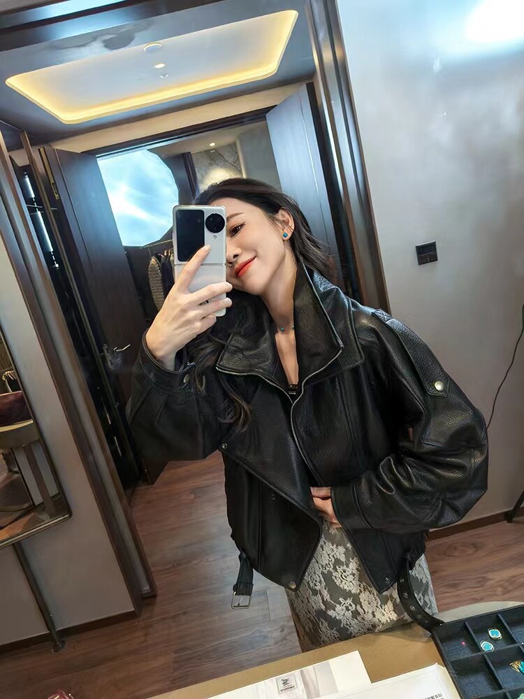 Haining New Style Bubble Leather Motorcycle Jacket for Women, Heavy-Duty Double-Layer Collar, Lamb Leg Sleeves, Oversized American Retro Jacket, Trendy