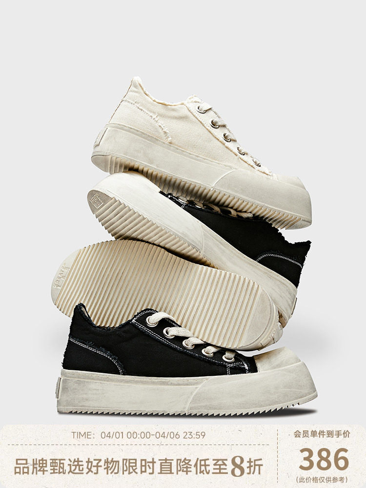 Kreate'Distressed Color Jumbo' Thick-Soled Height-Increasing Commuting Casual Canvas Shoes, Same Style as Zhang Linghe and Shen Yue