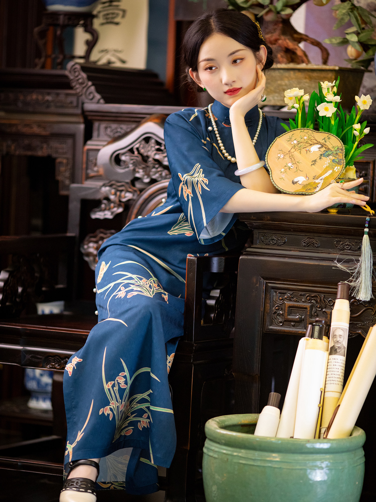 Old Images of Guilan | City Breeze | Summer Style Retro Chinese Style Dark Print Inverted Large Sleeves Traditional Cheongsam