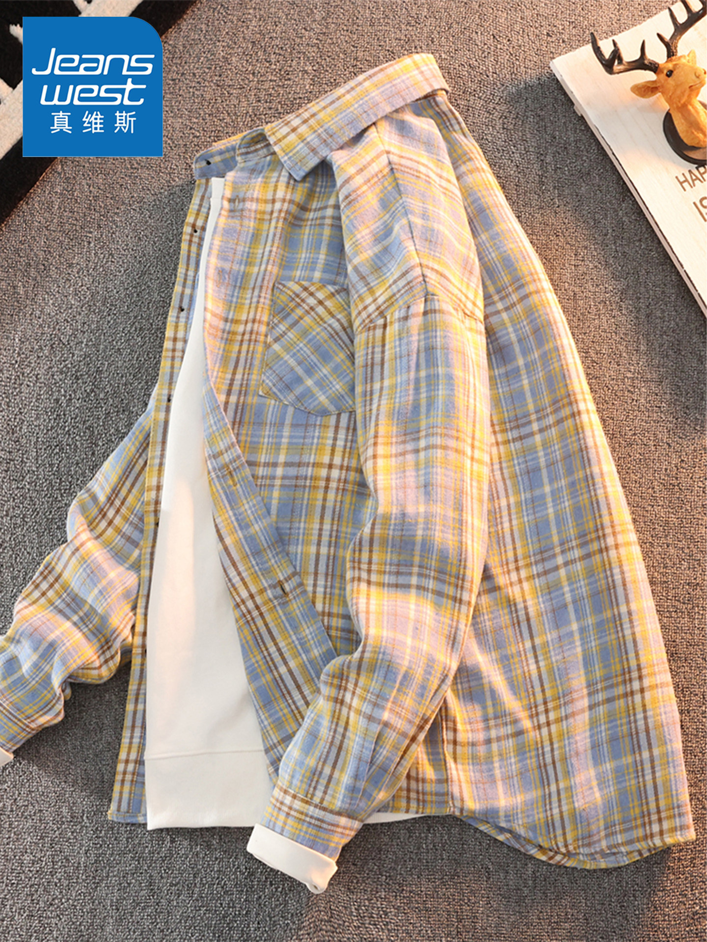 Jeanswest Plaid Shirt for Men and Women, Spring and Autumn Trendy Japanese Style Long-Sleeve Shirt, Loose Fit, Couple's Casual Versatile Jacket