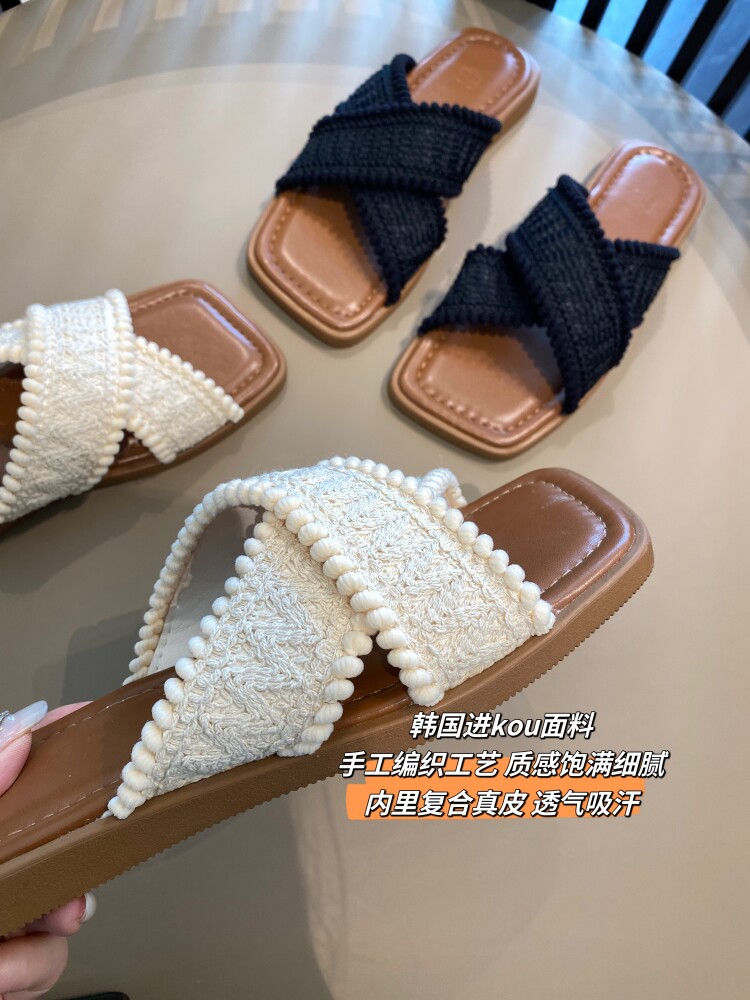 Amr Uu ◆ Fashionable and Easy to Wear, Bohemian Woven Cross Slippers, Flat Sandals for Women, New Summer Style