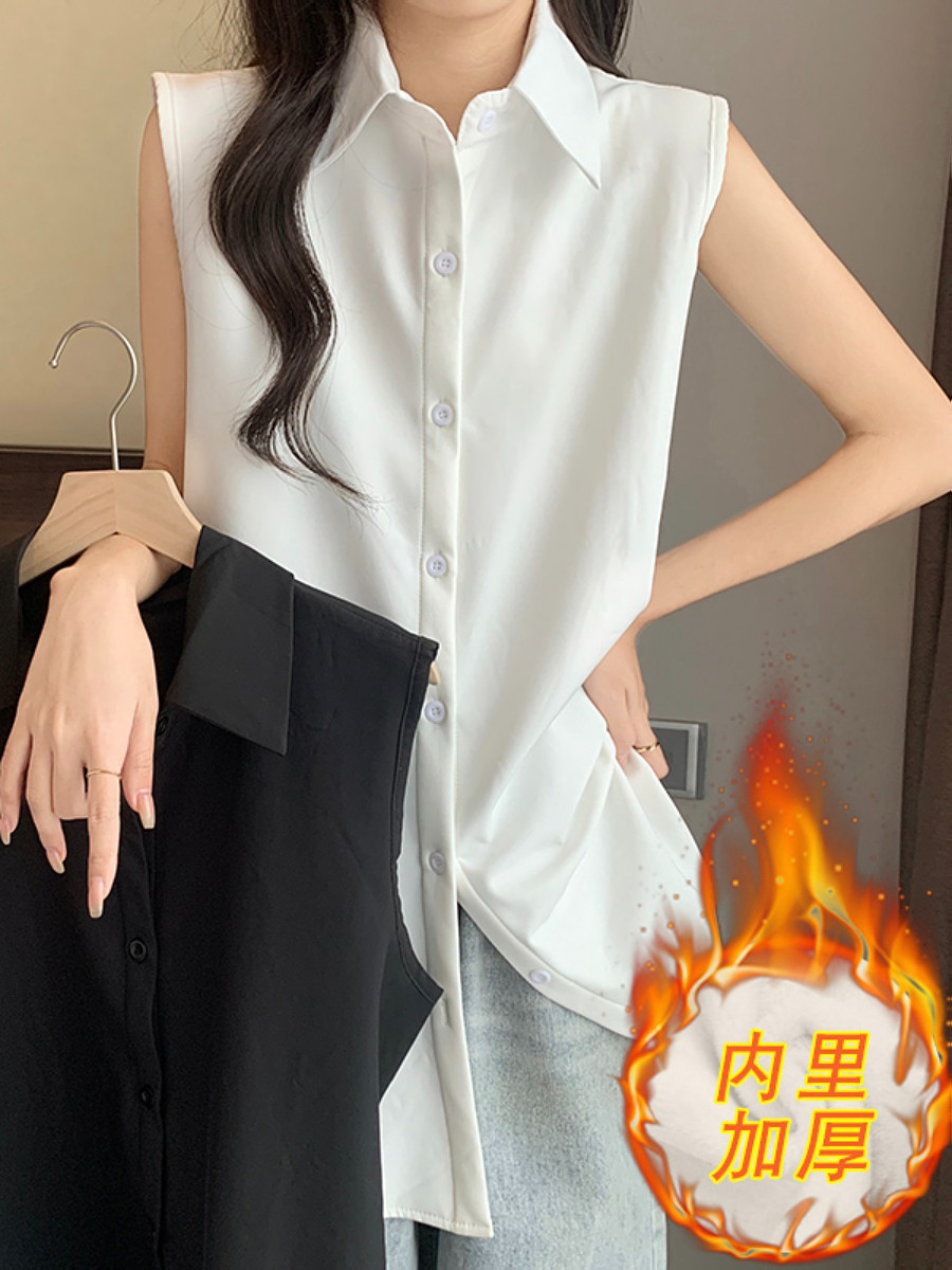 Plus Size Women's Clothing 2026 Autumn and Winter New Sleeveless Solid Color Shirt Mid-Length Polo Collar Inner Layer Versatile Top