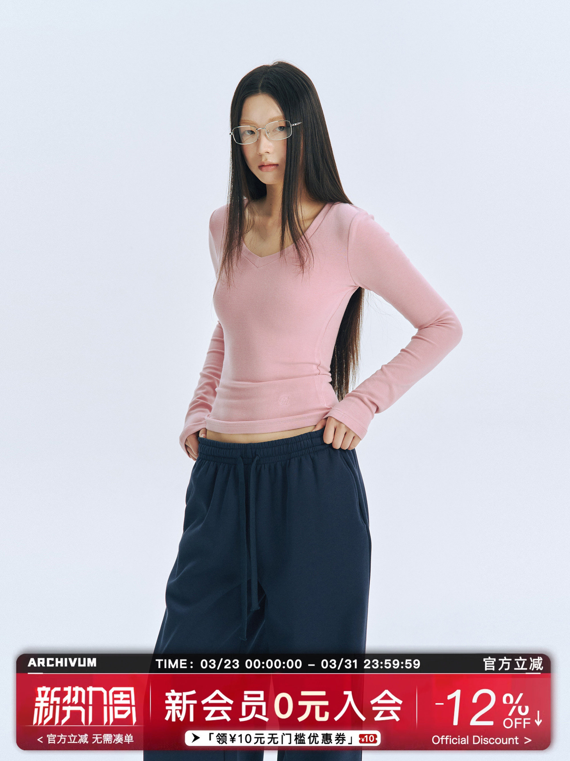Archivum Solid Color V-Neck Stretchy Slim-Fit Long-Sleeve Top That Makes You Look Slim and Sexy, Suitable for Hot Girls and Commuting