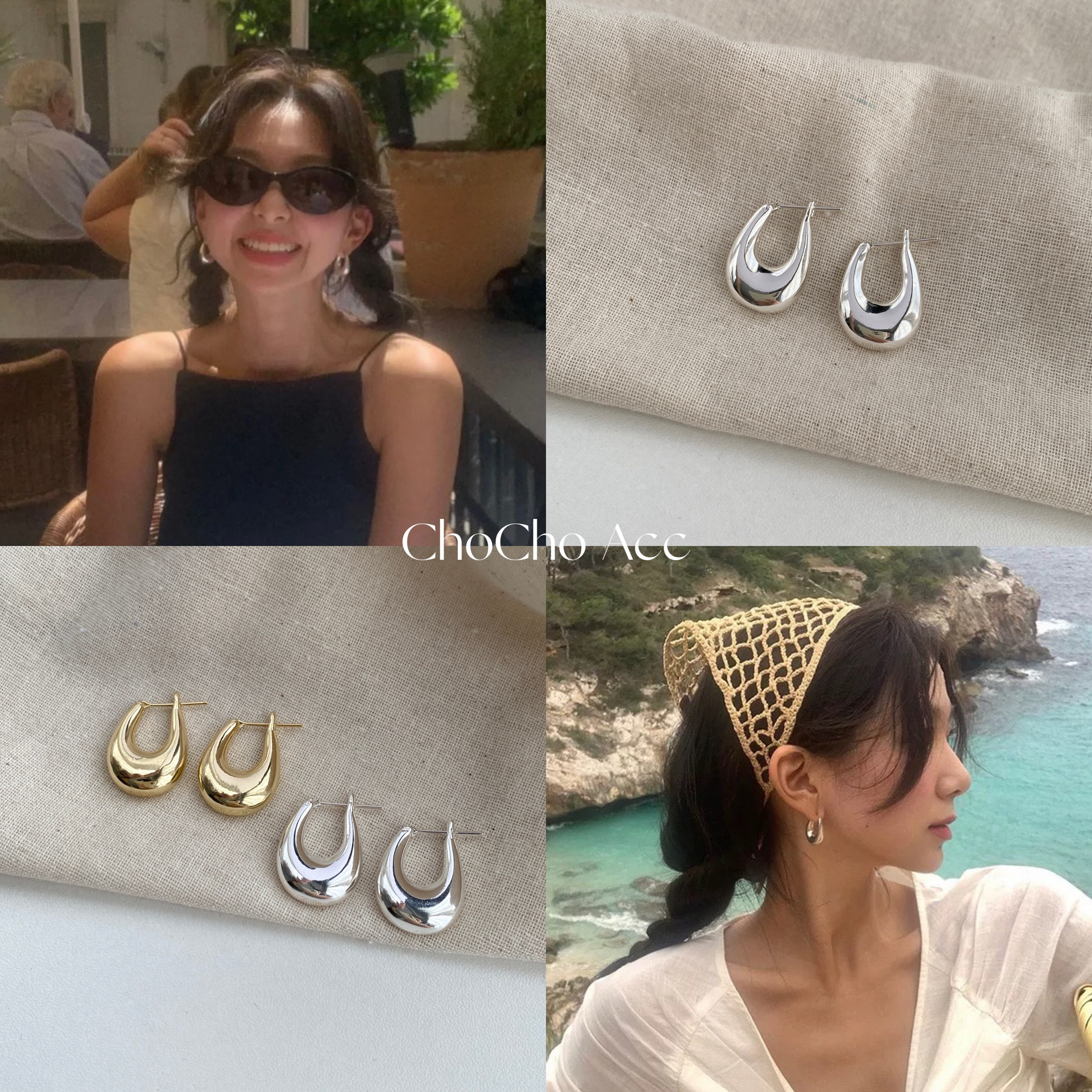 Chocho/Korean Blogger Fever's Same Style Geometric Water Drop Earrings with a Niche Design and a High-End Feel