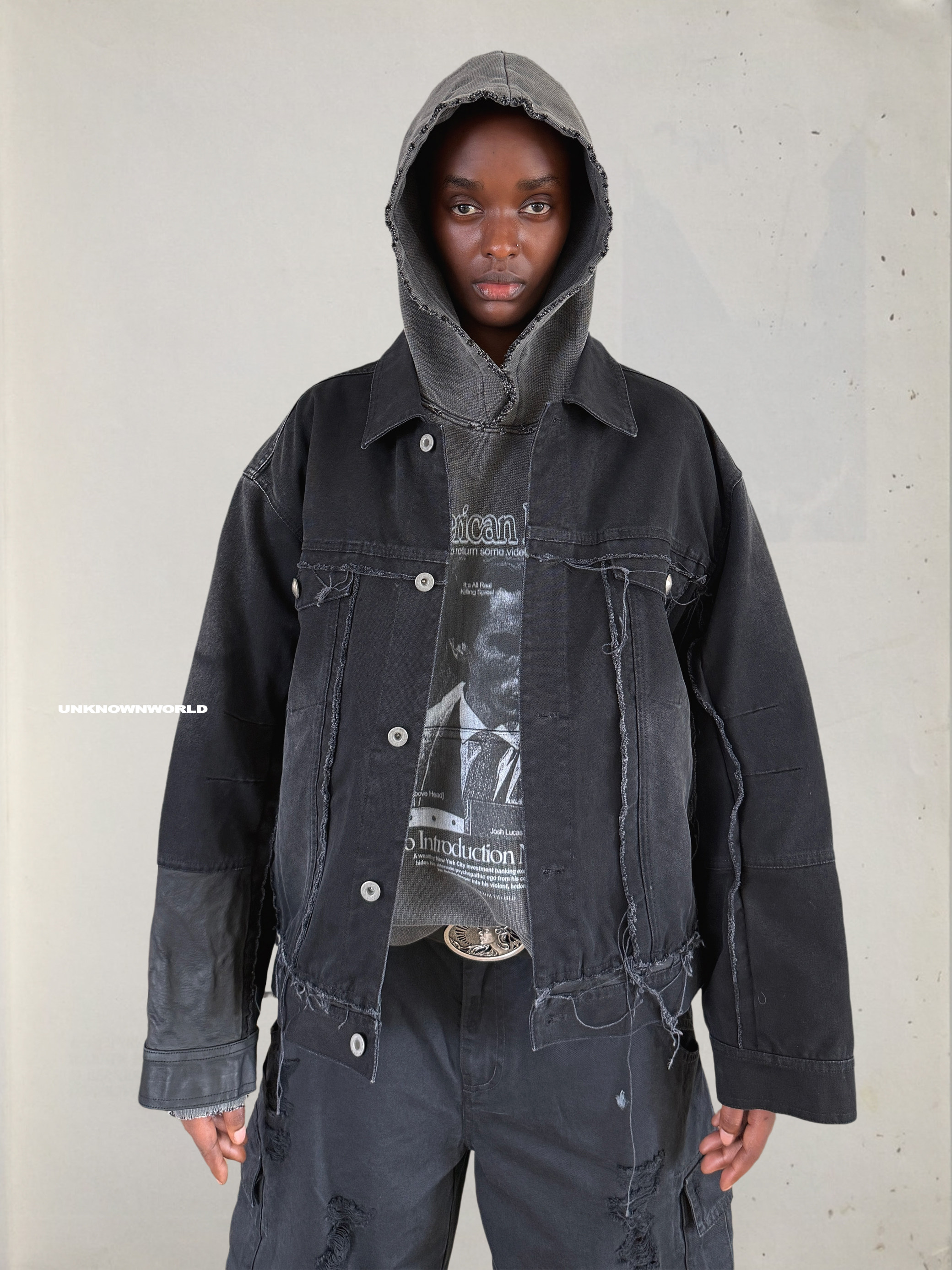Unknownworld 25Fw Demon Season Silhouette Cut Deconstructed Raw Edge Prosthetic Leather Patchwork Washed Jacket