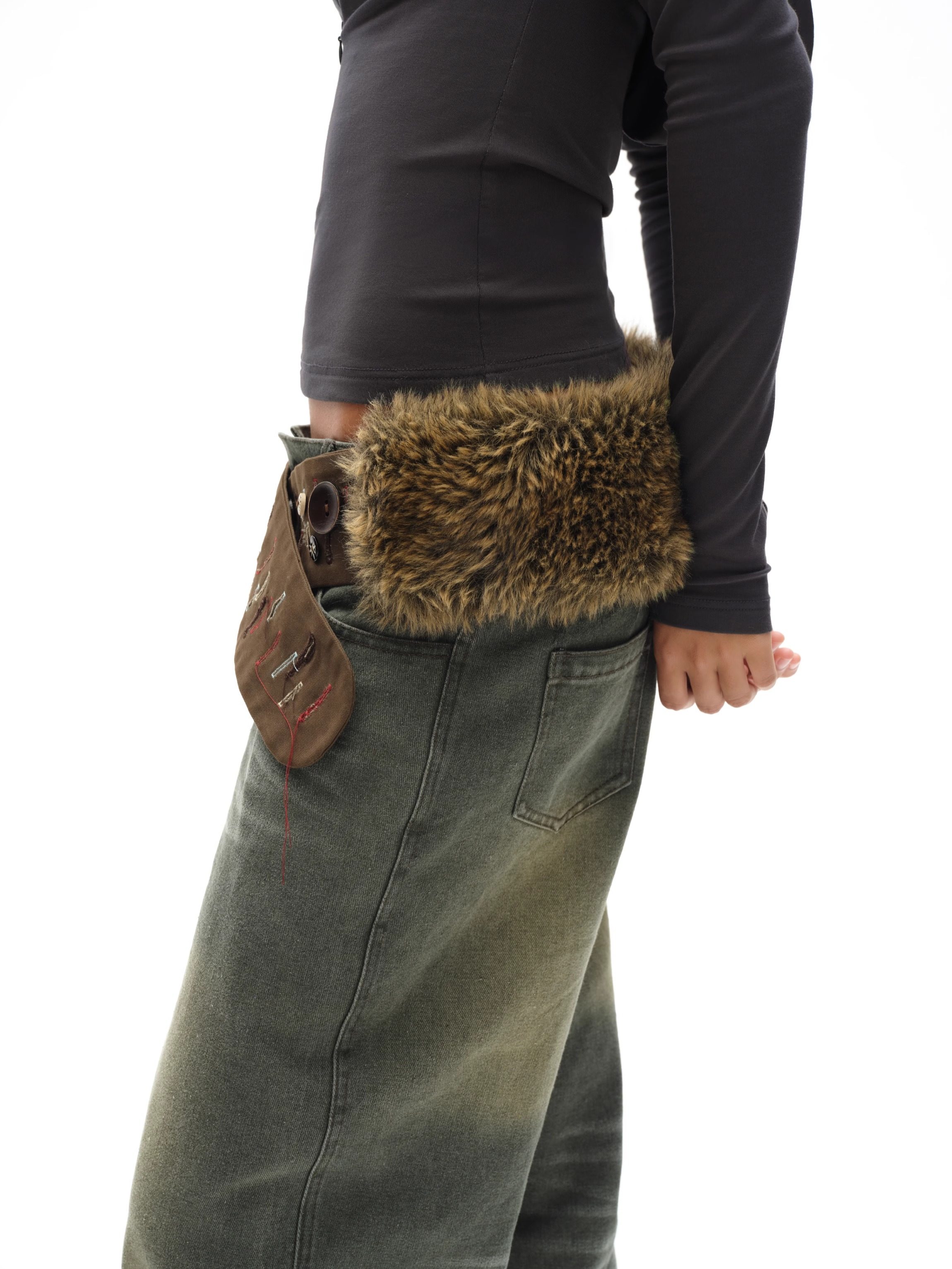 Oinimi Dopamine Buttonhole Fun Fur Belt Waist Cincher Multi-Use Scarf Waist Cincher Layered Styling