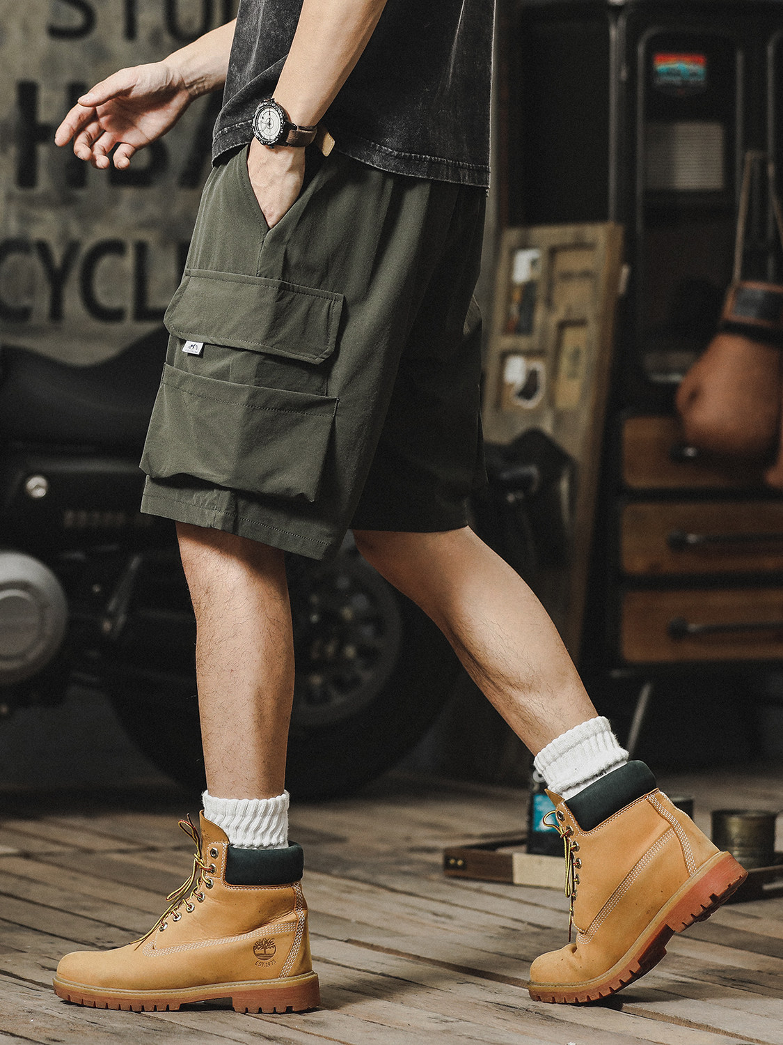 Ice Silk Work Shorts for Men, Summer Thin Style, American Trendy Brand, Straight Loose Fit, Breathable, Quick-Drying, Casual Five-Point Shorts
