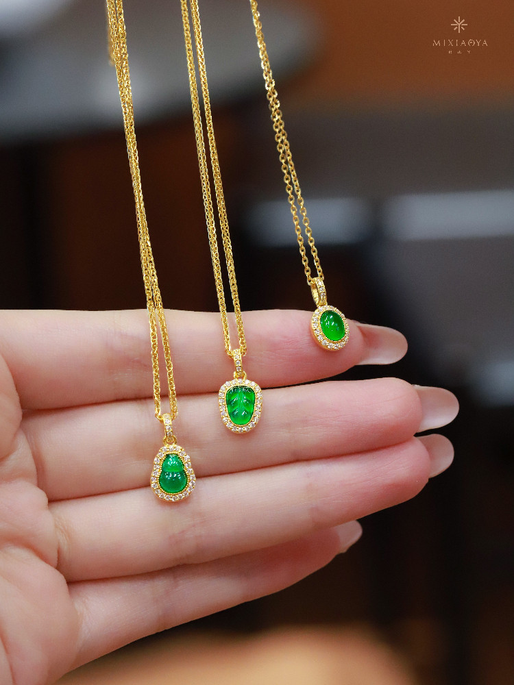 Mi Xiaoya Jewelry Pure Gold 999 Natural Jade Gourd Necklace with Inlaid Ancient Gold Leaf Pendant Clavicle Chain