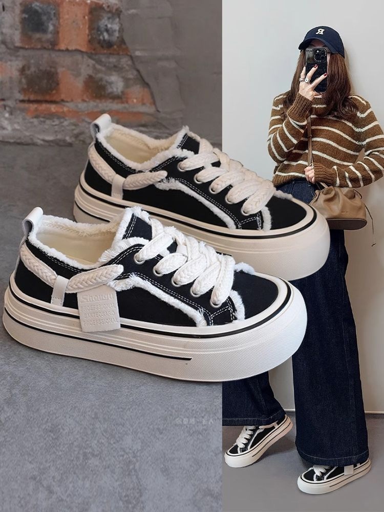 Sanli Casual Sports Super Popular Ugly-Cute Big-Toe Shoes for Women 2025 Spring and Autumn New Style Versatile Frayed Canvas Shoes for Petite Individuals