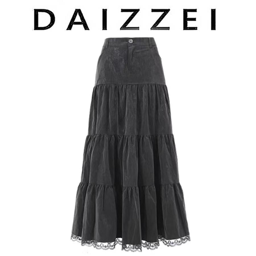 Daizzei~ Gothic Style Cake Skirt High Waist Slim Design 2025 New Elegant Lace Skirt for Women