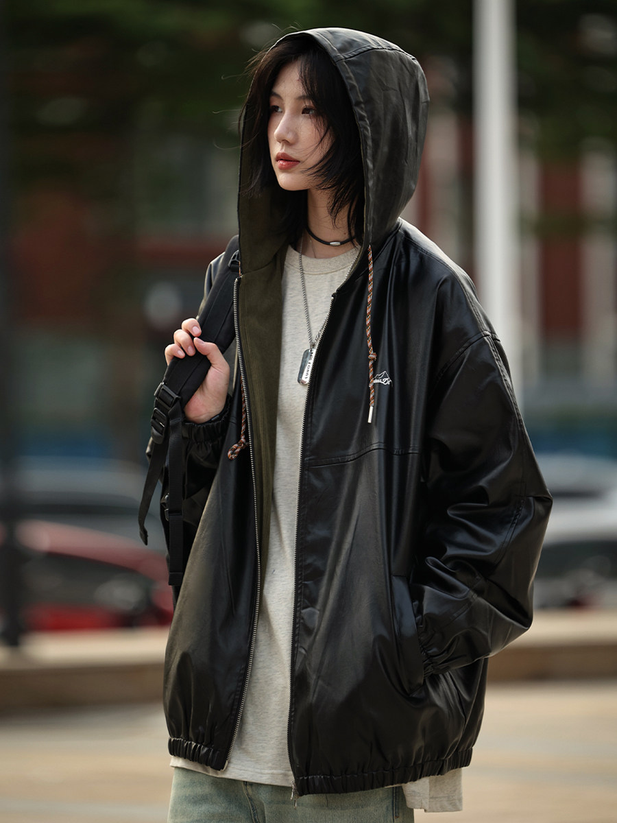 Your First Love, Lao Wang, Leather Jacket for Men, Autumn and Winter Pu Leather New Style American Retro Motorcycle Jacket Trendy Hooded Ins