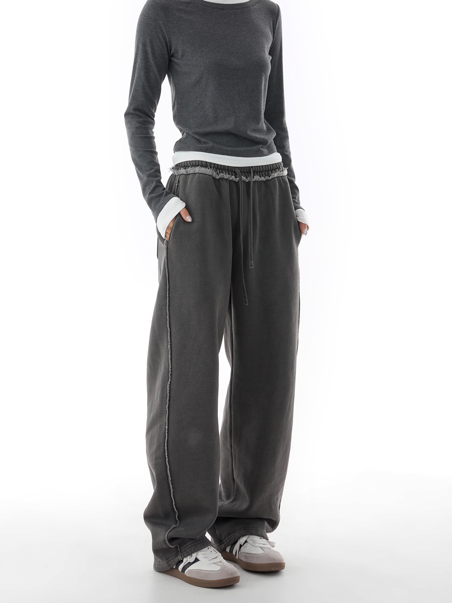 American Retro Washed Vintage Gray Straight-Leg Sports Pants High Street Casual Fleece-Lined Sweatpants Women's Versatile Trendy Long Pants