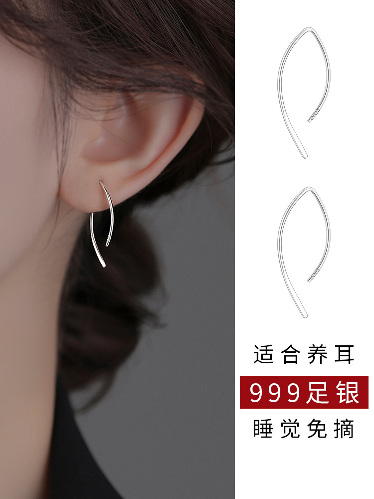 999 Pure Silver Simple Line Earrings for Women, Niche Design, Versatile Ear Studs, Ear Hooks for Pierced Ears, 2026 New Style Earrings