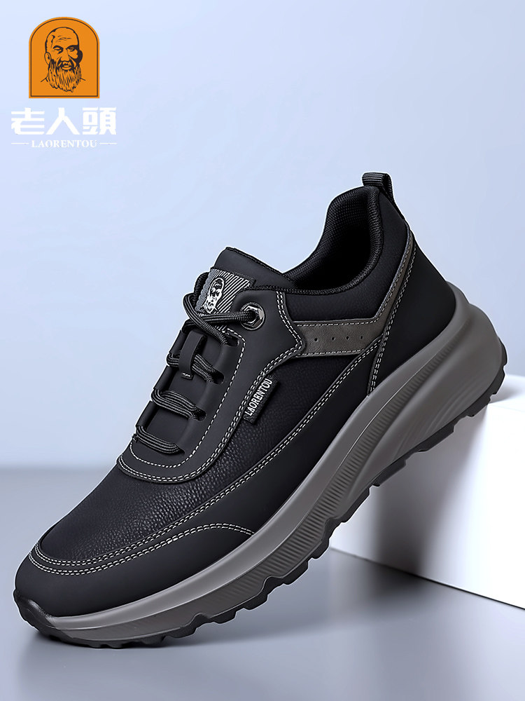 Old Man Head Men's Shoes Spring Men's Genuine Leather Breathable Casual Shoes Solid Soft-Soled Sports Shoes Non-Slip Running Shoes for Men