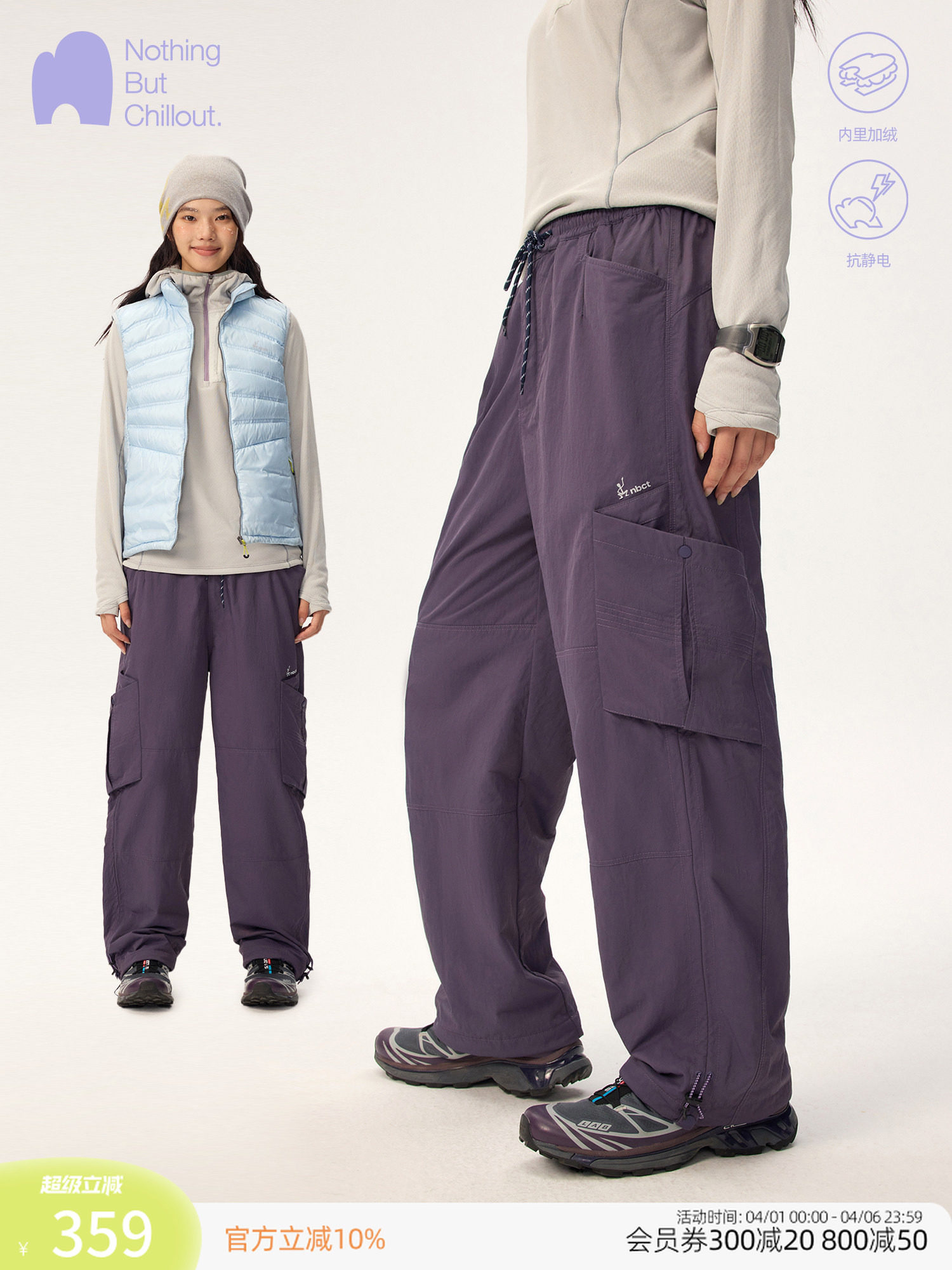 Nbct Outdoor Fleece-Lined Casual Pants for Women, Autumn and Winter, Anti-Static, Adjustable, Multi-Pocket, Fleece-Lined Long Pants