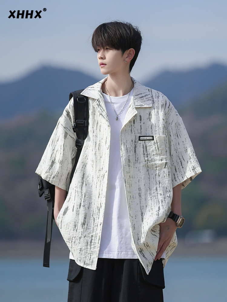 Summer Short-Sleeved Shirt for Men 2025 New Style High-End Loose Top Heavyweight Casual Half-Sleeve Shirt Jacket for Boys