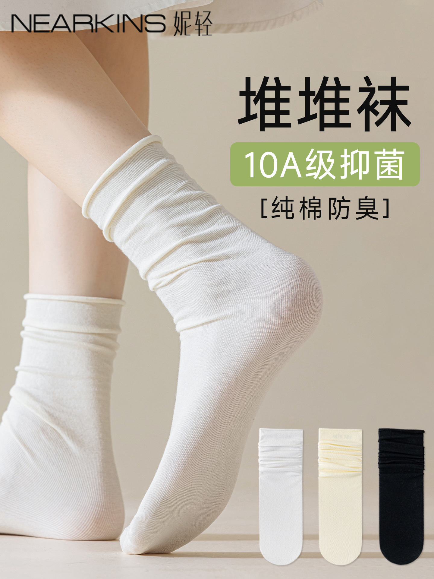 Rolled Edge Slouch Socks for Women, Spring, Autumn, and Winter Styles, Pure Cotton Mid-Calf Socks, 2025 New Model, Popular in Autumn and Winter, White, Paired with Loafers