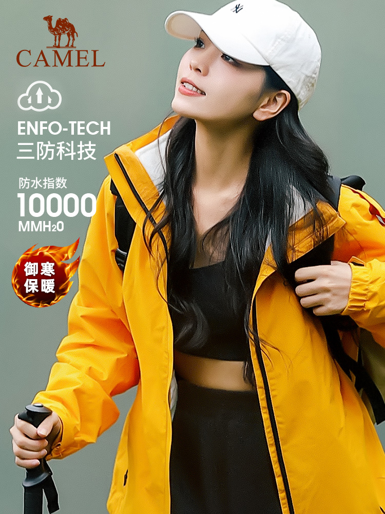 Camel Brand Women's Yellow 3-in-1 Detachable Outdoor Windproof and Waterproof Travel Jacket, Camping and Hiking Clothing for Men