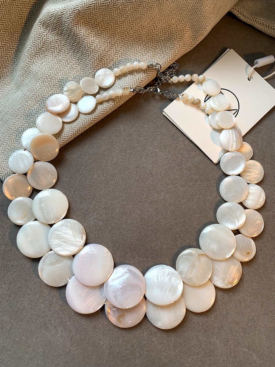 2025 New Spring and Summer Fashionable Vacation Style Sweet and Cool Natural Mother-Of-Pearl Round Bead Necklace High-End Niche Simple Choker