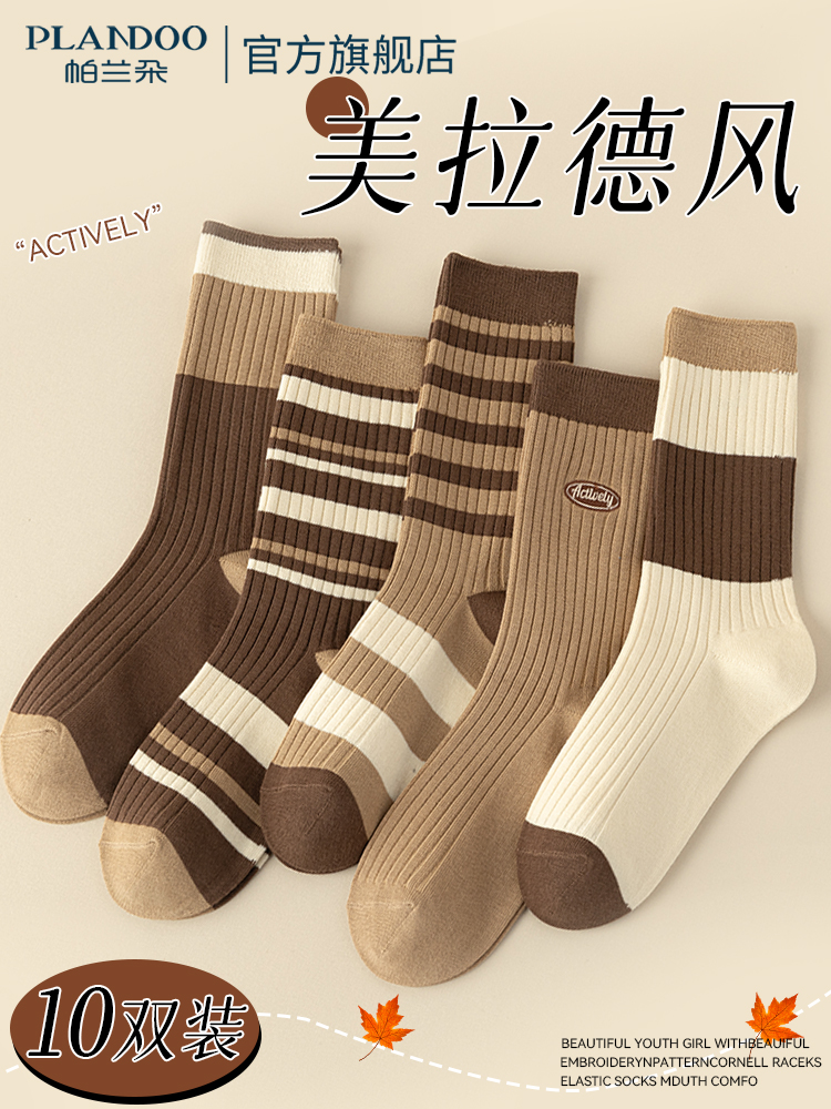 Palando Socks for Women, Mid-Calf Socks, Spring and Autumn Style, Coffee Color, Slouch Socks, Simple and Versatile Striped Socks for Women