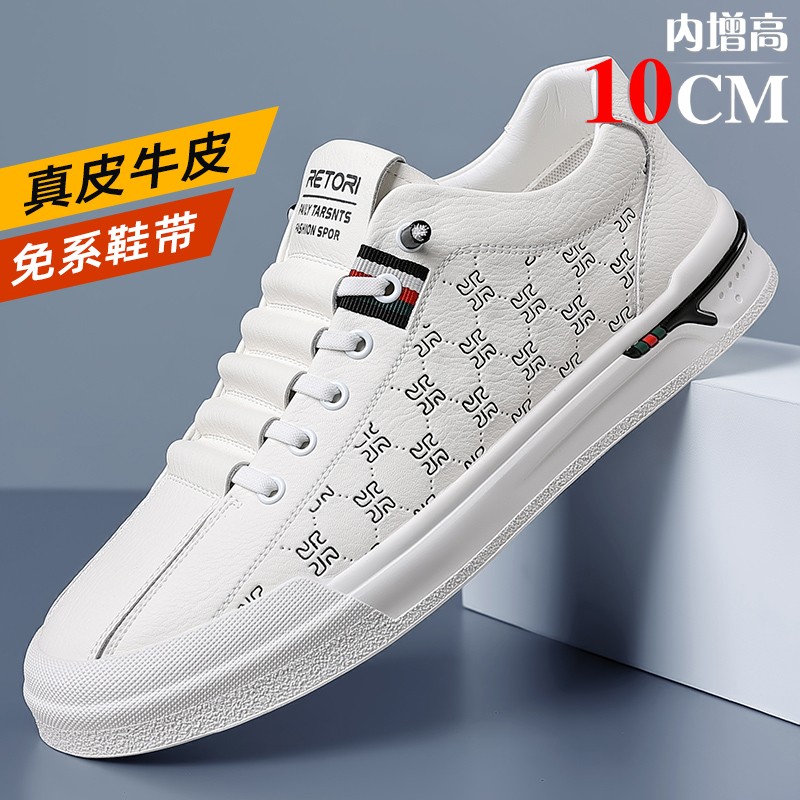 European Men's Shoes with a Hidden 10cm Height Increase, Genuine Leather Soft Sole Casual Shoes, Men's Summer Sports White Shoes, 8cm