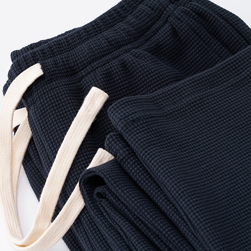 Waffle Heavyweight Straight-Leg Sports Casual Sweatpants, Spring and Autumn Style, Solid Color, Drapey, Loose-Fitting Long Pants with Elastic Waist, Unisex