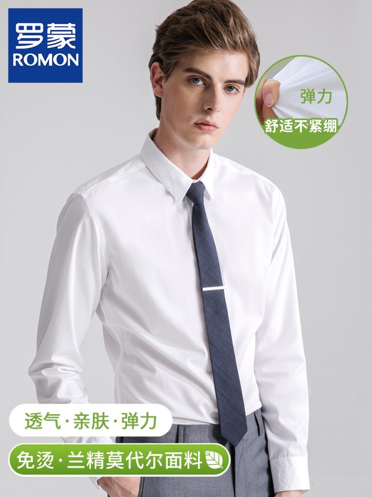 Romon White Shirt Men's Long-Sleeved Professional Formal Wear No-Iron Business Work Clothes Wedding Groomsmen Suit Fleece-Lined Shirt