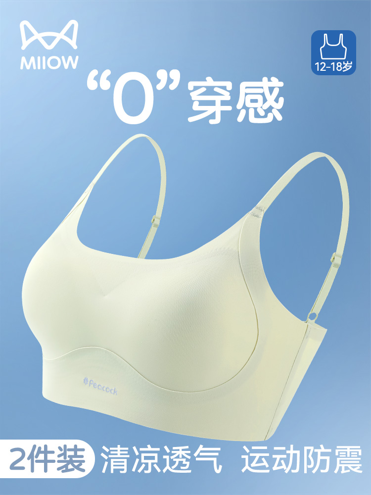 Cat-Themed Girl's Underwear for Developmental Stage Students, Sports Shockproof, for Girls in the Second Stage of Development, Summer, Middle and High School, Vest Style