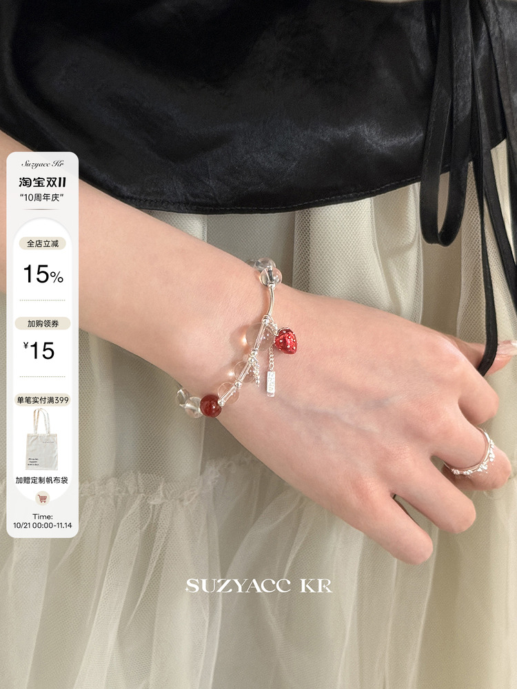Suzyacc Versatile High-End White Crystal Sterling Silver Strawberry Bracelet Light Luxury Niche Exquisite Gift for Best Friend Jewelry