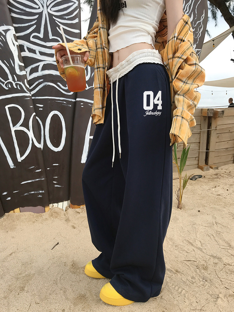 Jmj 2025 American Retro Sports Patchwork Waistband Casual Pants Summer Unisex Loose Casual ins Long Pants