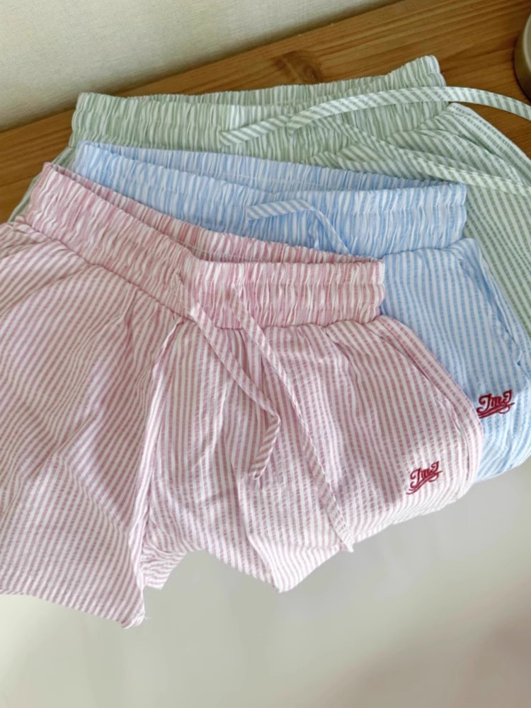 Clearance Sale~ Blue Striped Shorts for Petite Women, Summer Thin Casual Loose High-Waisted Drawstring Wide-Leg Pants