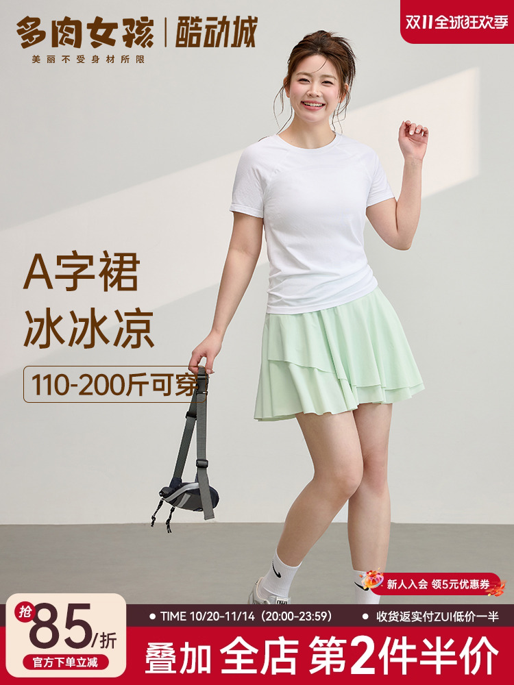 Plus-Size Girl with a Chubby Figure, Large Size, Fake Two-Piece, Sun-Protective, Cool-Feeling, Sports Yoga Outerwear, Fitness Tennis Short Skirt for Women, Spring and Summer