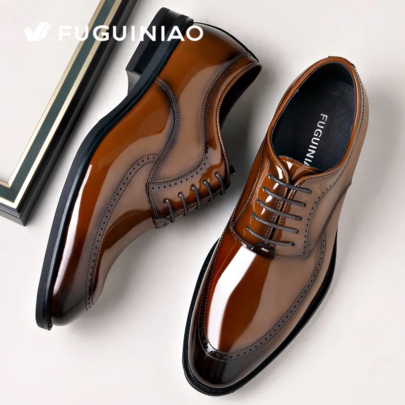 FGN Men's Shoes Genuine Leather Business Formal Leather Shoes Men's Shiny Leather Trendy Groom Wedding Shoes Pure Cowhide