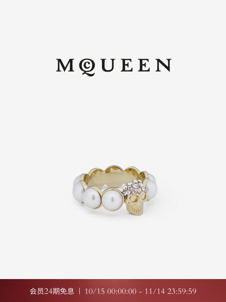 Mcqueen Mcqueen 25 Fall/Winter New Women's Skull Imitation Pearl Ring