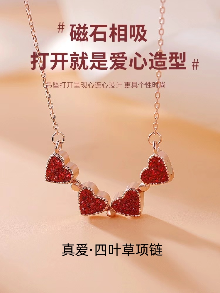 Sterling Silver Four-Leaf Clover Necklace for Women, Transformable Magnetic Heart Clavicle Chain, Chinese Valentine's Day Gift for Girlfriend or Wife