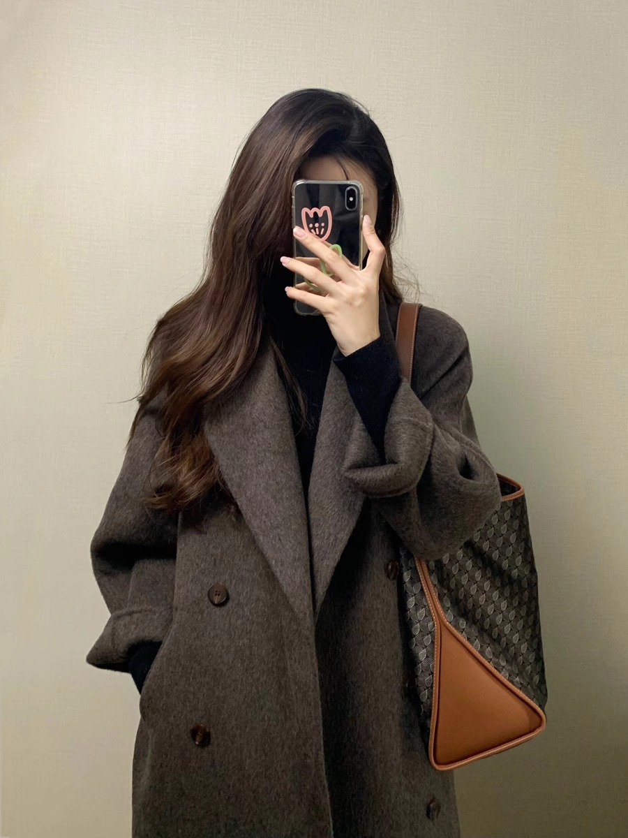 High-End Double-Sided Wool and Cashmere Coat for Women, Autumn and Winter 2025 New Style, Thickened Woolen Coat for Petite Women