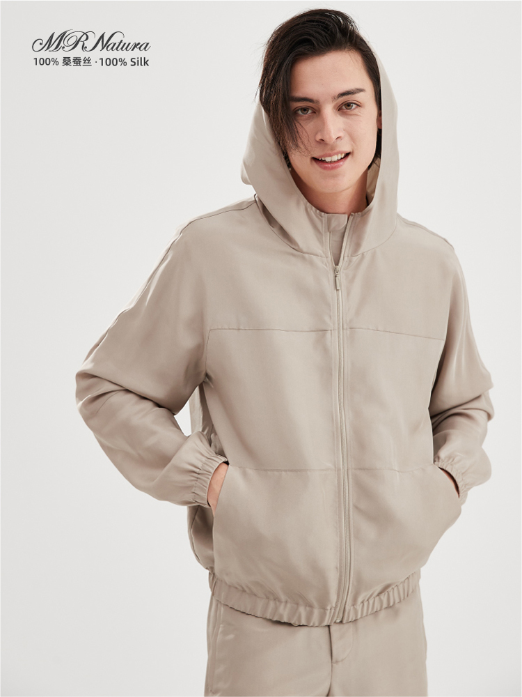 100% Mulberry Silk Stretch Crepe Suit Jacket, Silk Hooded Jacket, Electric Spun Casual Pants, Solid Color Suit, Summer
