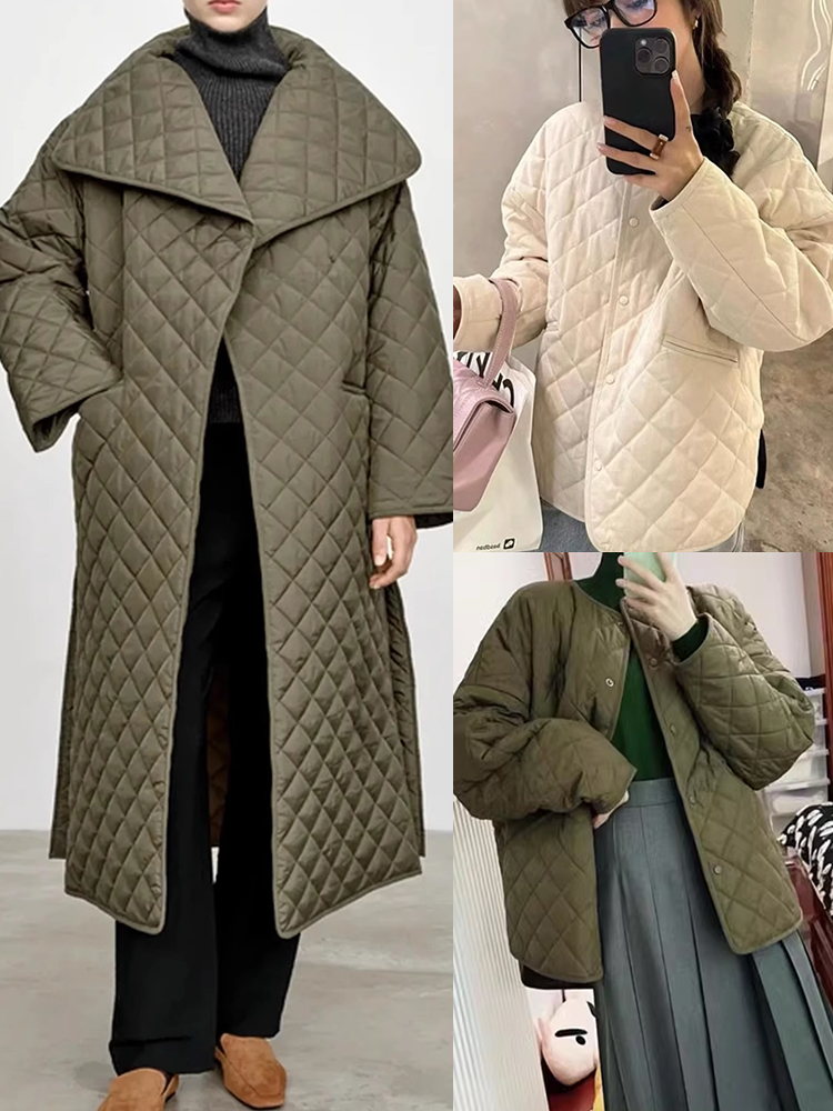 So Bad That I Have No Friends! Two Colors Available. Swedish Tt. Popular Diamond-Quilted Long Coat with Large Lapel, Cotton-Padded Jacket