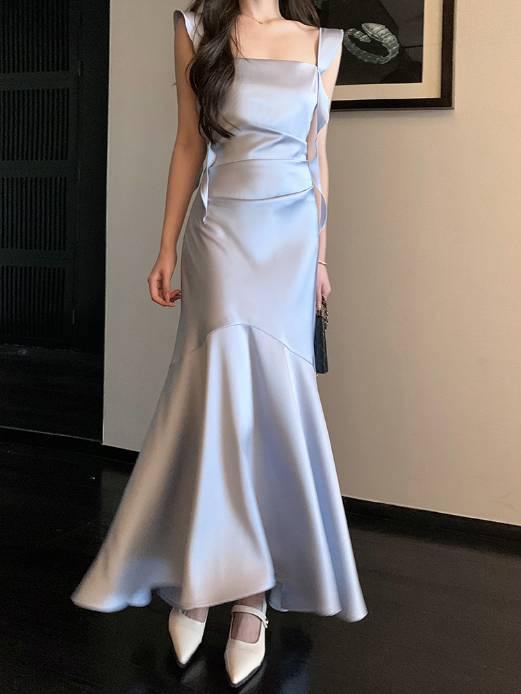 Butyou Dopamine Strap Dress Women's Summer Satin Design Slim Fit Birthday Dress Long Dress