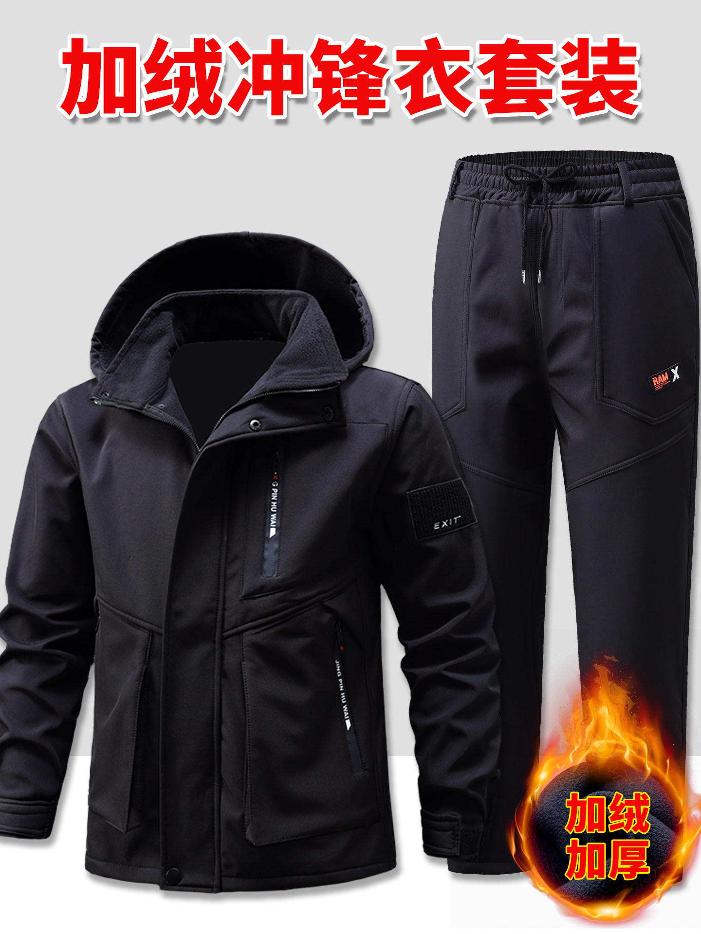 Casual Workwear Suit for Men, Autumn and Winter Long-Sleeved Outdoor Jacket, Fleece-Lined, Windproof, Warm, Labor Protection Workwear