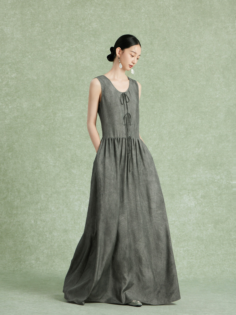 Nian Shier [Zouma Lan Tai] New Chinese-Style Textured Creative Design Flowing Silk Twill Dyed Vest Dress